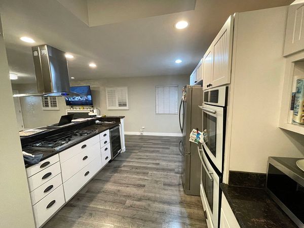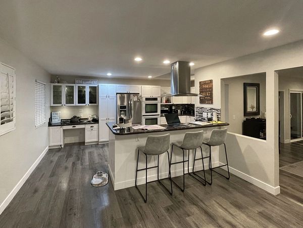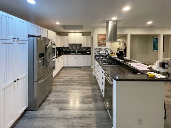 Customer did not like the overall design of the kitchen, especially the island and exhaust fan placement. They wanted a more modern and open feel.